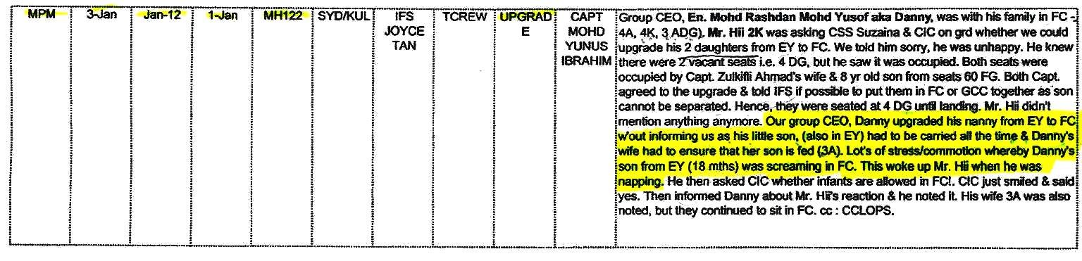 The VOYAGE REPORT on the Deputy Group CEO of MAS during flight MH122 on 1-1-2012. Md Nor, AJ, Rozman Omar, CFO, and Shane Nollan, the Acting Commercial Director of MAS, care to comment?
