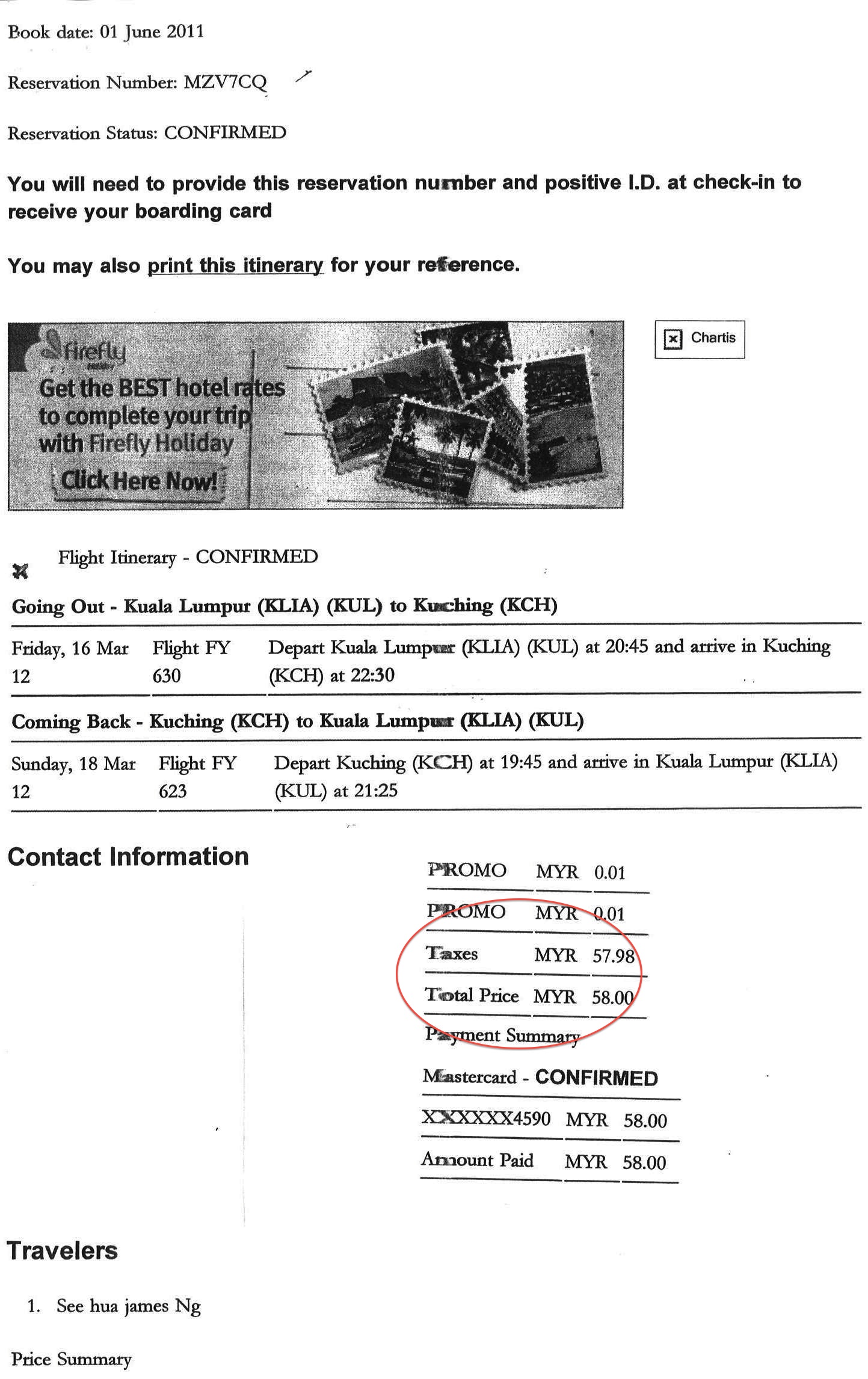 On 15-3-2012 yours truly has highlighted the uplifting of AirAsia X Sdn Bhd(AA X)‘s passengers where MAS ticket showed that NO FARE was charged. On 17-3-2012 yours truly has also lodged a police report over this matter.