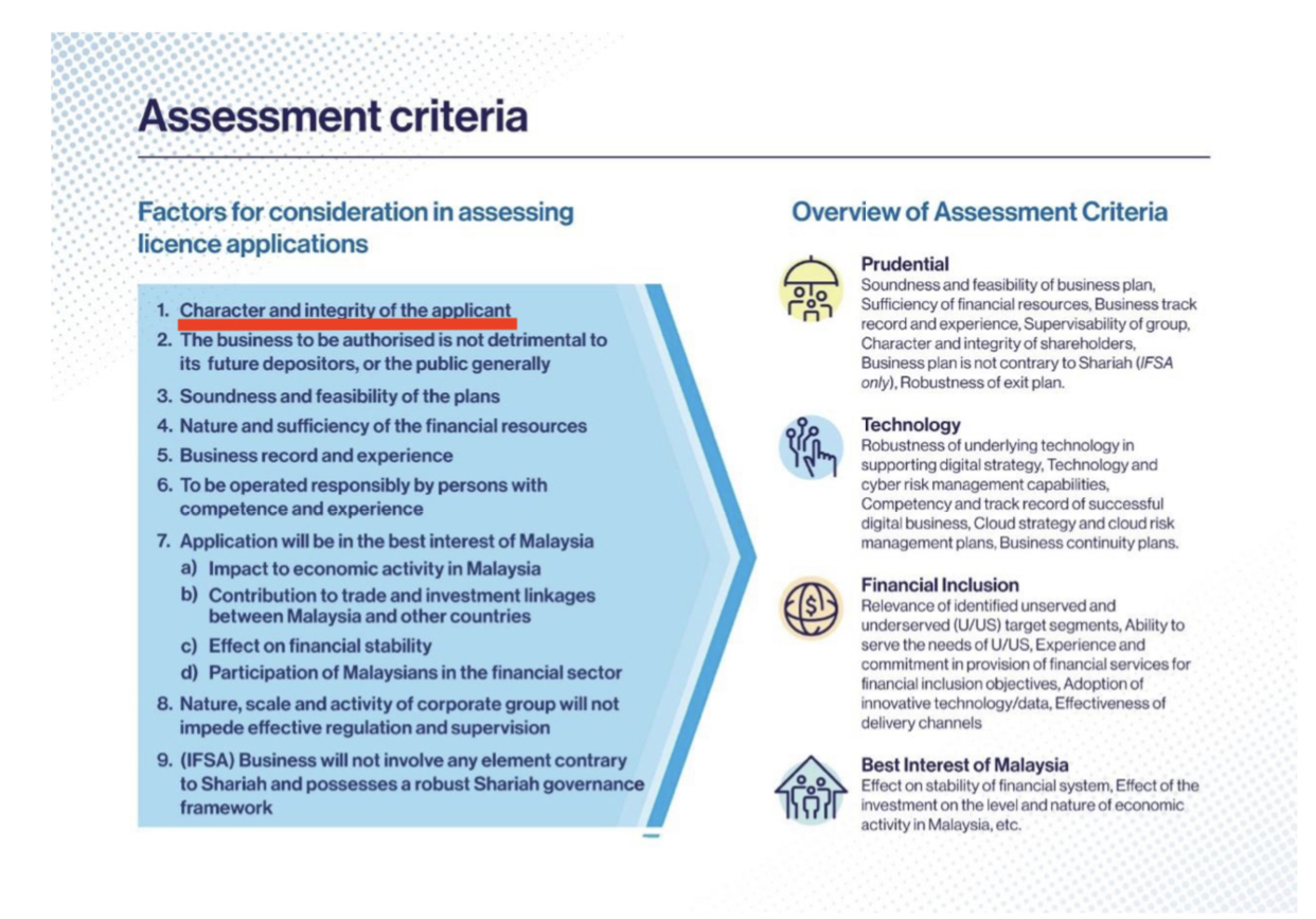 In the said press statement, BNM had clarified its assessment criteria covers:
