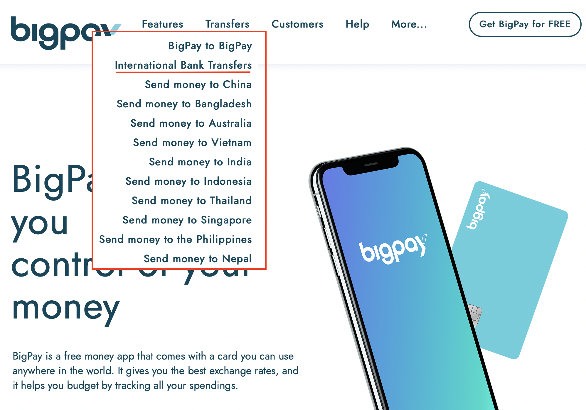Upon checking BigPay’s website, it provides international bank transfers to China, Bnagladesh, Australia, Vietnam, India, Thailand, Singapore, Philippines and Nepal and other banking facilities like BigPay Later Personal Loans, DuitNow and etc, HERE.