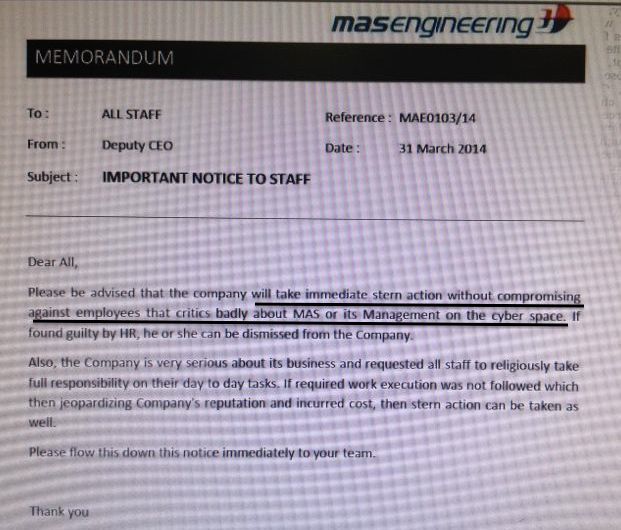 When MAS Group CEO, En Ahmad Jauhari Yahya (AJ), is busy with the problems of the missing MH 370, En Aminuddin Zakaria, the deputy to that highly qualified CEO of MRO Tuan Azhari Dahlan was busy threatening staffs at the MAS