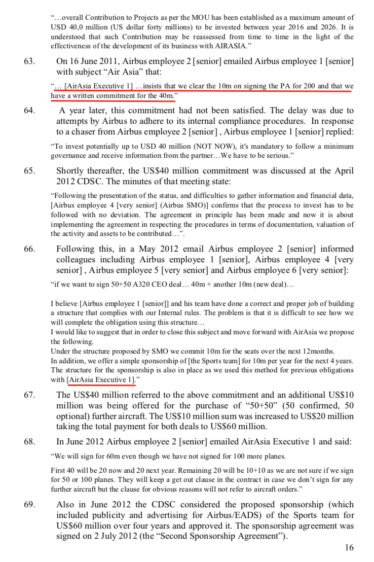 UK Crown Court quoted in its judgement that an AirAsia Executive No: 1 sent an email to Airbus:”I WANT MY 16M NOW”!