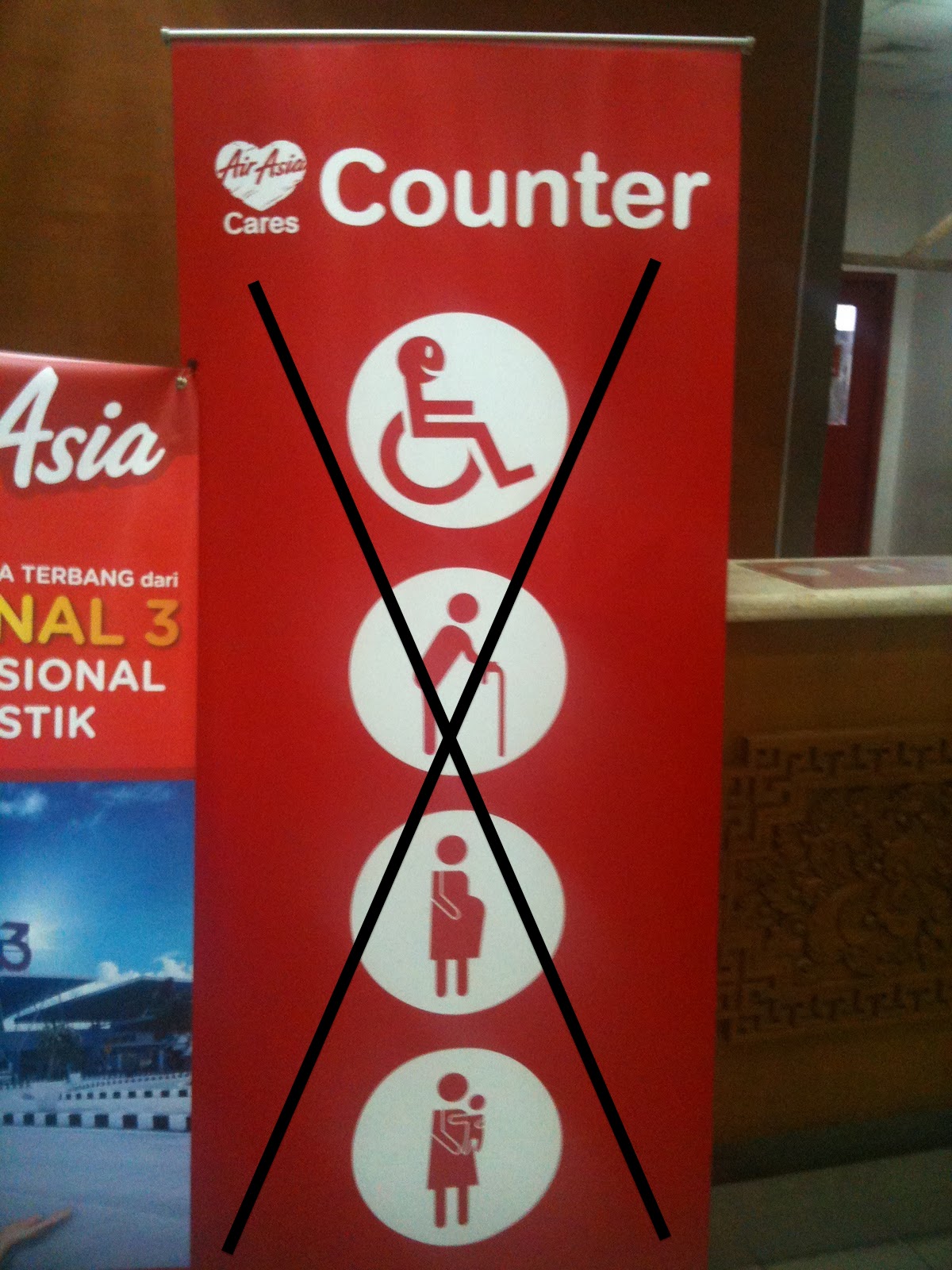 It cost a disabled person RM120 for one way and RM240 return trip for using the wheelchair service from AirAsia. It is to be noted that wheelchair service from check-in to the aircraft is provided by all airlines. Thank you MAS for providing free wheelchair service to its disabled passengers. Syabas MAS!