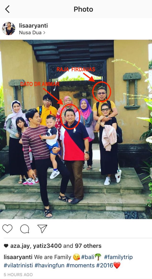In 2016 Raja Firdaus’ wife Instangram posting showing both families of Dato Dr Ammar and Raja Firdaus were on a luxurious holiday and fun together in Bali. Both Ammar & Raja Firdaus are very close buddies in every sense of the word